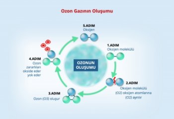 Üç oksijen atomundan oluşan ve molekülleriyle renksiz bir gazdır.